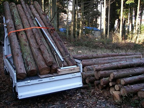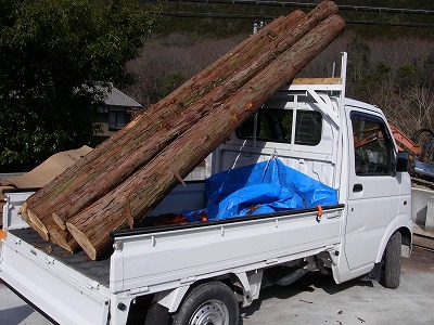 丸太をいただいたので、軽トラで運び