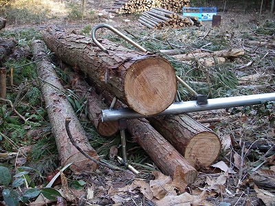 水分をたっぷり含んだ切りたての丸太は結構重いです。