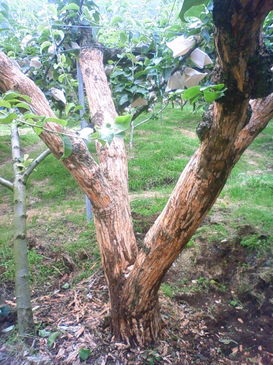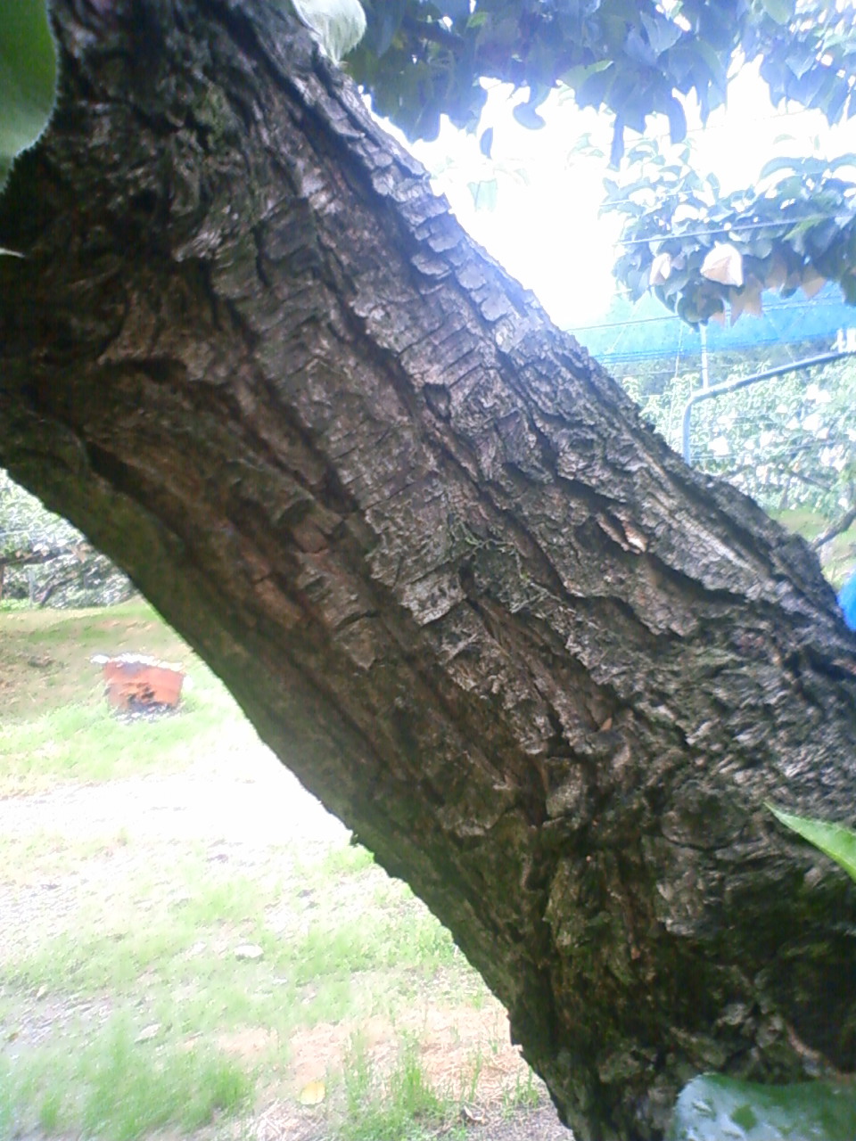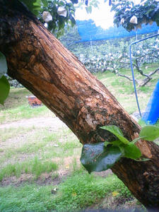 作業は梨の木の皮向き。